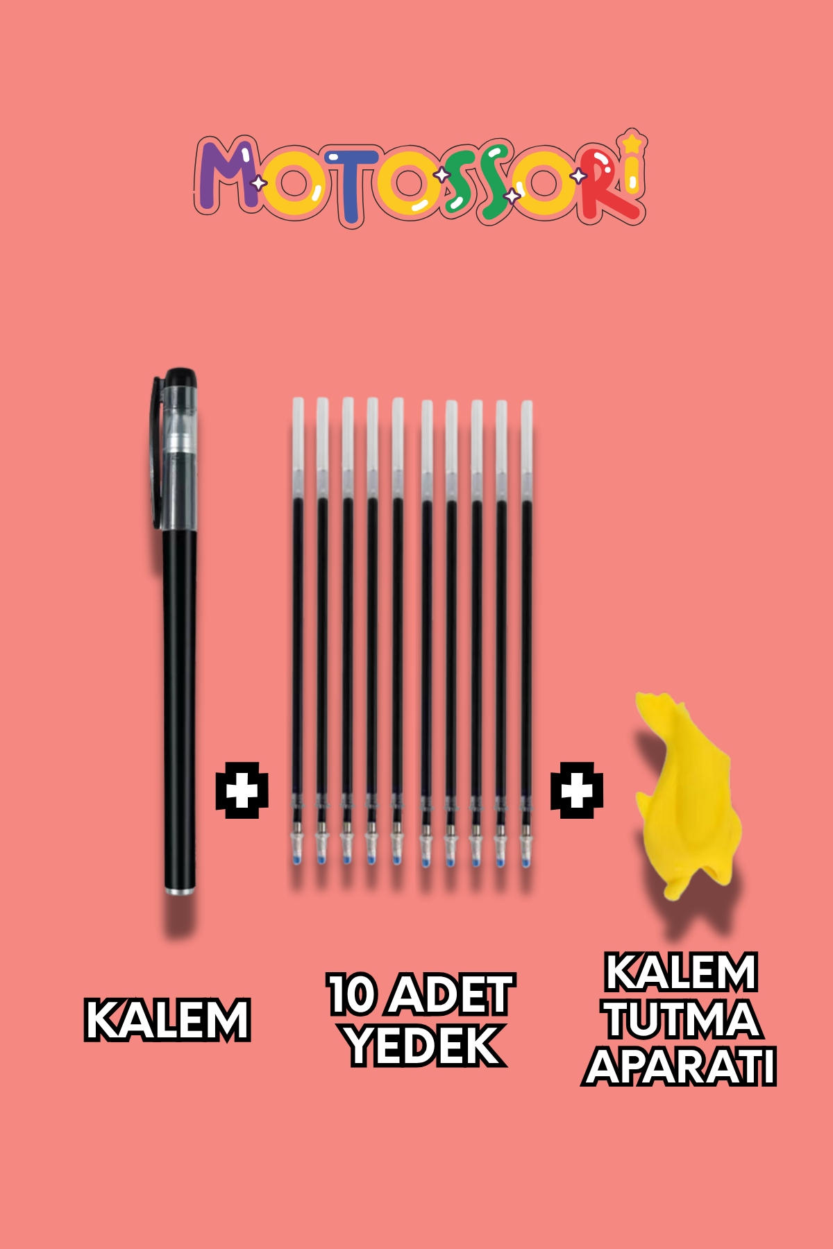 Sihirli Yazı Kalem + Kalem İçi Yedeği 10 Adet + 1 Adet Kalem Tutacağı – Sihirli Defter Kitap Setinde Kullanılan Kalem seti