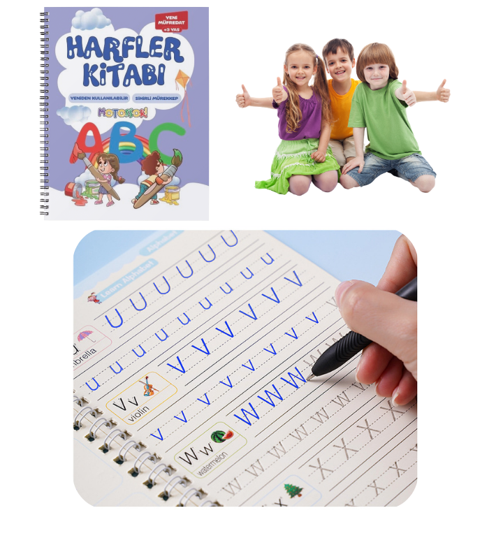 • Sınırsız Pratik: Sihirli mürekkeple yazdıklarınız kaybolur, kitapları ve defterleri tekrar tekrar kullanırsınız. Ekonomik ve çevre dostudur. 🔄